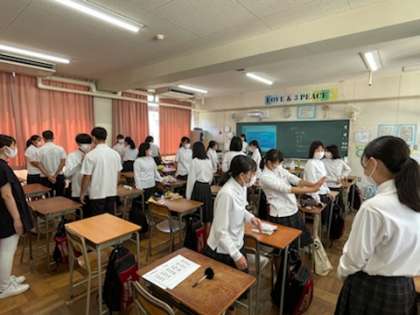 コミュニケーションについて学ぶ中で、パーソナルスペースがどれくらいなのか近づいて試していました。