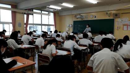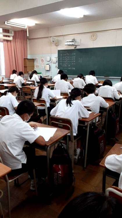 1日で5教科を行う、学力テスト。どのクラスも集中し、頑張っています。