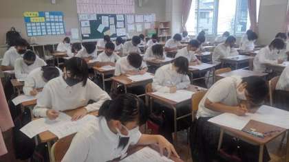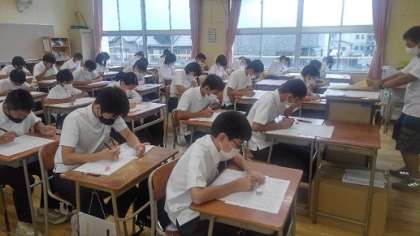 本日は3年生のチャレンジテストが行われていますが、2年生も実力テストを実施しました。各自真剣に取り組んでいました。