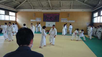 大阪府中学校体育連盟の会議に合わせて、本校武道場で合同練習会が行われ、府下の柔道部委員およそ50人が参加して打ち込みや、乱取りを行いました。昼からは職員の審判講習会が行われました。