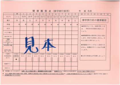 特に朝の「ピンク色の検温表」を忘れた場合は、自宅に取りに帰ってもらうことになりますので、ご留意ください。