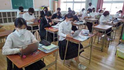 授業にグループワークを取り入れたり、一人一台端末を使用したり、体育の授業で自分の動きを撮影して分析に役立てたり。特別支援学級でも、コグトレという新しい取り組みが行われています。