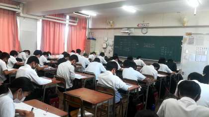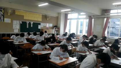 テスト1日目、4時間ありますが、みんな集中して解いています。
