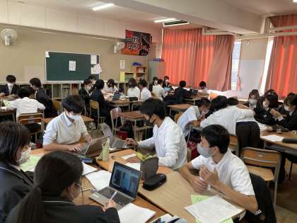 2年生は今日の5、6時間目に昨日の校外学習で学んだことや感想を新聞にまとめています。
