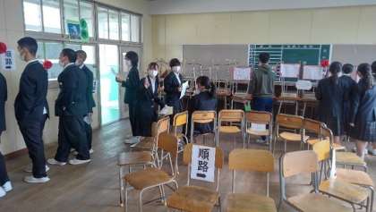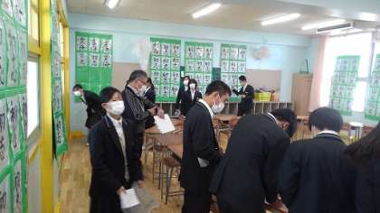 校舎内のいろいろな教室、廊下に様々な展示作品が飾られていました。展示も保護者の皆さまに見ていただきました。