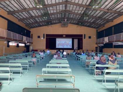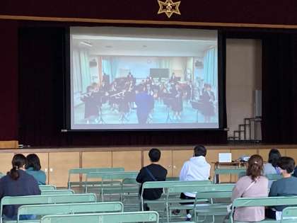 体育館では、先日の文化祭で鑑賞した動画を放映しています.