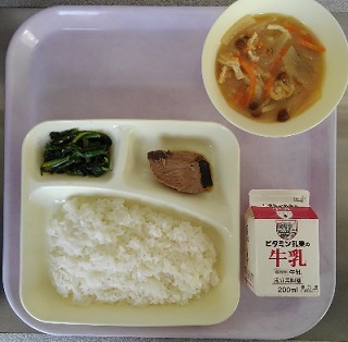 ごはん 牛乳 なまりぶしのしょうが煮 なめこのみそ汁 ほうれんそうのごまあえ