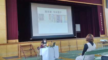講師は、脚本家の今井雅子さんです。新型コロナ感染防止対策で昨年度は中止になりましたが、ようやく校区のPTAの行事を行うことが出来ました。