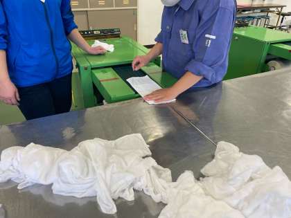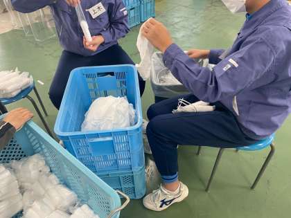 「おしぼり加工」という実習種目で、作業場所の消毒や洗濯、袋詰め作業などを行いました。