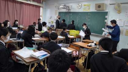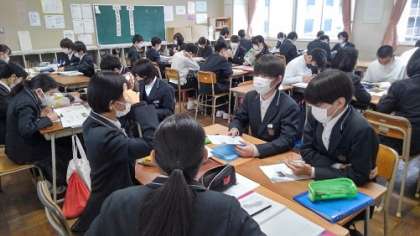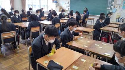 今日は雨で肌寒い一日でした。1年生は午後からスポーツ大会を予定していましたが、あいにくの雨で体育館での実施になりました。それでも、室内綱引き大会を行い、盛り上がっていました。