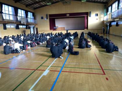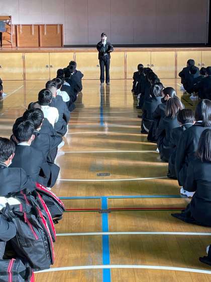 本日朝の学年集会で、『2年生のみんなは学校生活でそれぞれができていることがたくさんあります。できていないところは行動を見直し、できているところはさらに伸ばしてより良い学年にしていこう。』という話がありました。来年は最上級生になります。一緒に頑張りましょう。