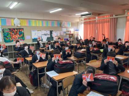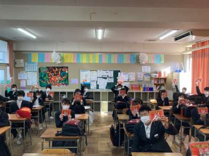 本日、3年生は、PTAの方たちから合格祈願のプレゼントをいただきました。