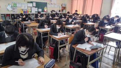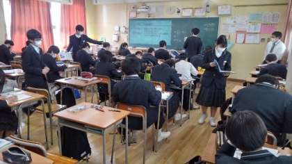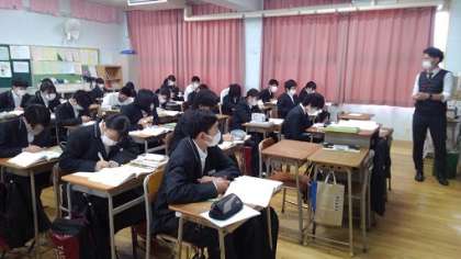 3年生のあるクラスでは、模擬テスト問題に取り組んでいましたが本番さながらの雰囲気でした。
