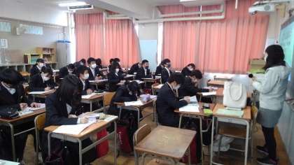 今日は1,2年生の学年末テスト前日になります。試験勉強や提出物などの点検が行われている教科もあるようでした。3年生は午後から公立受験のための進路懇談が行われています。(明日22日まで)