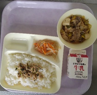 ごはん 牛乳 すき焼き煮 もやしとにんじんの甘酢あえ ツナっ葉いため