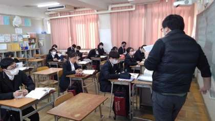 1,2年生は学年末テスト中でしたので、3年生の教室の様子です。