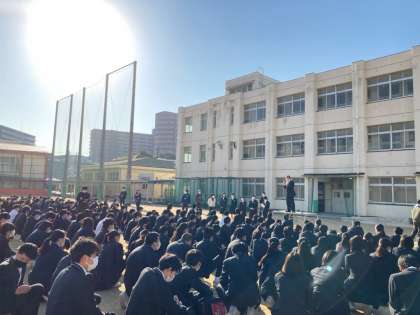 久しぶりのグラウンドでの全校集会でした