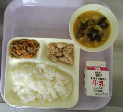 ごはん 牛乳 鶏肉のしょうゆマヨネーズ焼き みそ汁 きんぴらごぼう