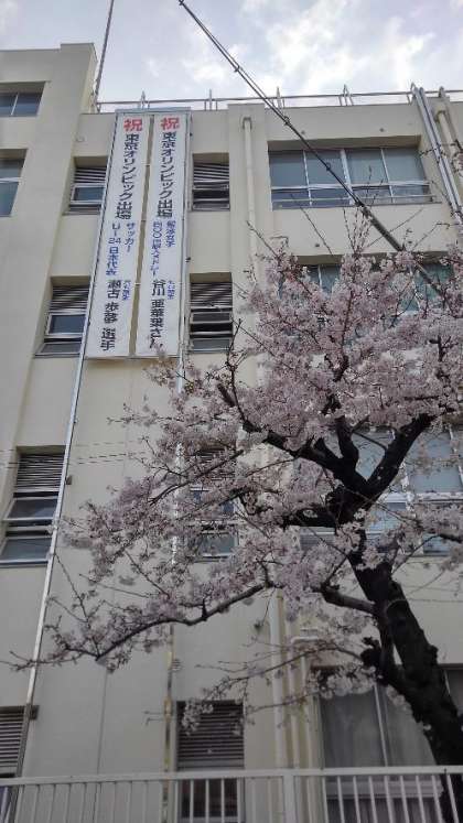 ここ数日の暖かさで、正門前の桜の花が咲きました。