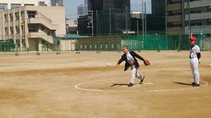PTAソフトボール部とPTAバレーボール部の始球式