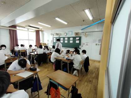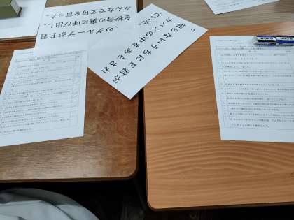 1年生は来週の「いじめについて考える日」の事前学習つぃて、様々なシチュエーションについて班で議論し、その内容を発表しあい共有しました。