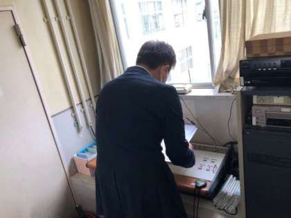 本来でしたら、生徒会執行部と常任委員の認証を行いますが、放送のため執行部のみ認証を行いました。