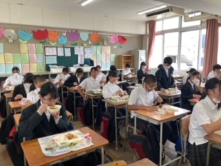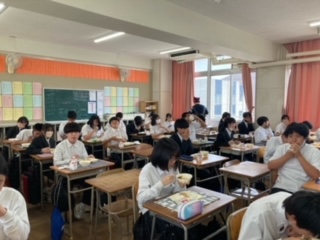 感染拡大防止の為、全員が前を向いて、黙食です