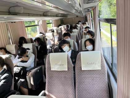 アジュール汐の丸に向かう3号車の様子です。フィールドワークで班員と協力してたくさん歩いたので、皆さん疲れた様子です。