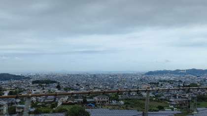 左手に瀬戸内海を見ながら、吉野川ラフティングに向かっています。