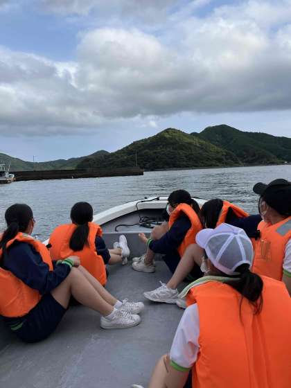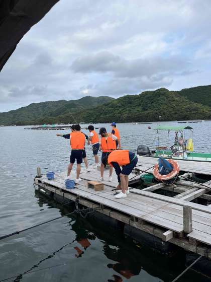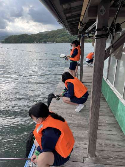選択別体験学習の筏の魚釣りの様子です。皆楽しんでいます。