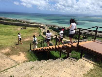 世界遺産の勝連城(かつれんぐすく・かつれんじょう)に連れて行ってもらっているグループがあります。
