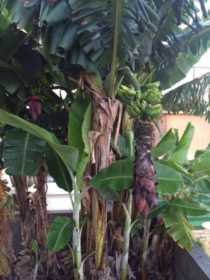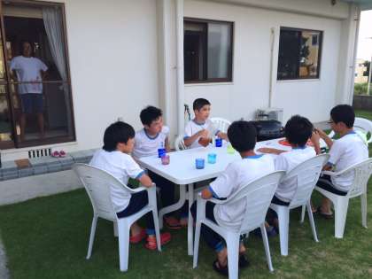 バーベキューをした後、くつろいでいるところです。敷地内には、バナナも植えてあります。