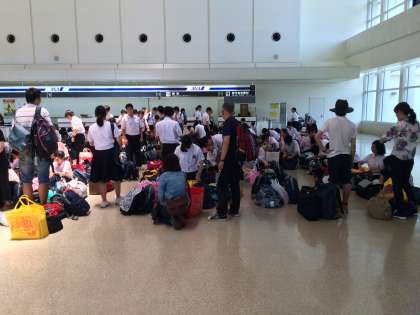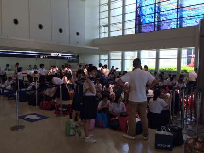 那覇空港に到着しました。これから搭乗手続きです。