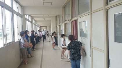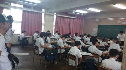 今日は1年生だけが登校して、1限に各クラスで研究授業を行いました。たくさんの保護者のみなさんに参観に来ていただきました。スマホ教室と学活が終了後、4限に教職員による研究協議を行います。