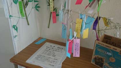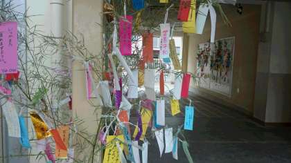 七夕に向けて、PTAでは通用門付近に笹を設置し、短冊を用意して生徒のみなさんに願いを込めたメッセージをつるしてもらっています。期末テストが終わって、テストが返却されました。結果はどうでしたか。テストは後の間違い直しがとても大切です。いよいよ今週の金曜日からは学期末懇談が始まります。もう少しで夏休みですね。