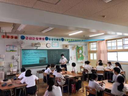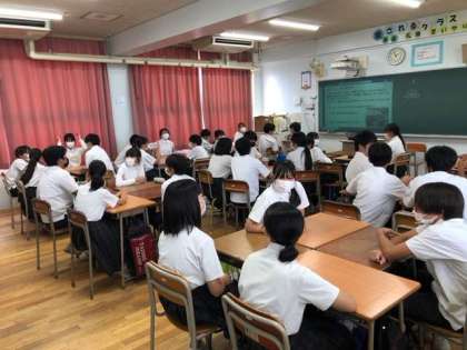 本日、1年生は5.6限目にクロスロード・搬送法・煙テント体験・水消化器の実習を行いました。