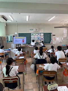 泉尾北小学校に本校英語科教員の村田先生と保健体育科教員の横井先生が出前授業に行きました