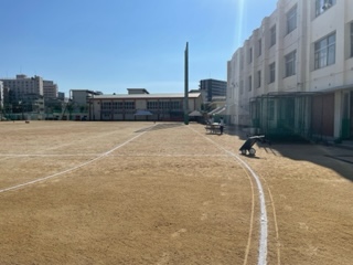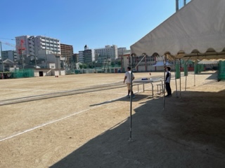 体育科の先生方が、朝早くから準備をしてくださっています。