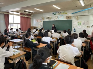 本日より、国語の先生として、内澤麻央先生が着任されました。2時間目、1年生4組の国語の様子です。