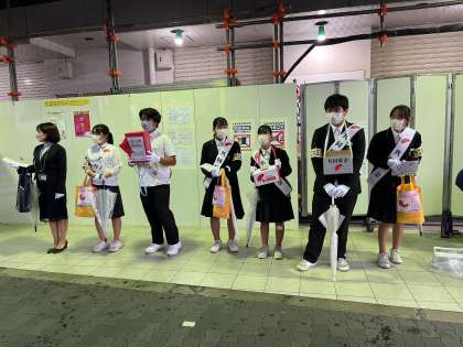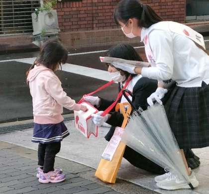 また明日も、16時頃〜17時まで大正駅前で行います。ご協力頂いた方には、赤い羽根やマスク、ピンバッチをお渡しします。ぜひ、来てください!