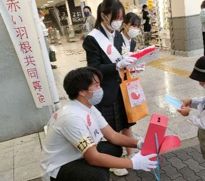 本日、大正駅前にて社会福祉協議会の方ご協力の下「赤い羽根共同募金活動」を行いました。