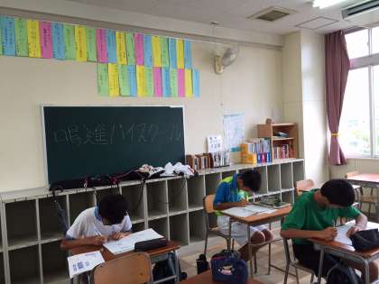 大人数のソフトテニス部では、学年ごとに分かれて、宿題を中心に懸命に学習に取り組んでいました。