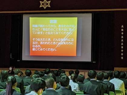 本日、3年生は、5・6時間目に体育館で性教育を行いました。