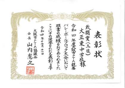 祝!! 大阪市PTA親善バレーボールブロック大会 第3位