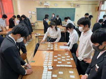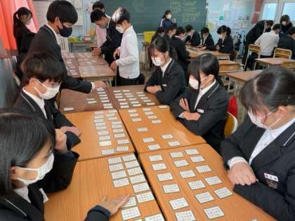 6時間目、百人一首大会の練習をしました。各クラス、一生懸命に取り組んでいます。