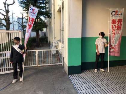 本日も昨日に引き続き生徒会役員による朝の挨拶運動の様子です。