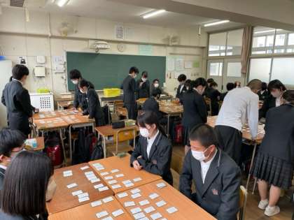本日、6時間目に2年生は、百人一首大会の練習をしました。