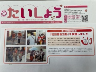 本校生徒会が、10月に大正駅前で行った、赤い羽根募金の様子が、大正区社会福祉協議会だよりに紹介されました。