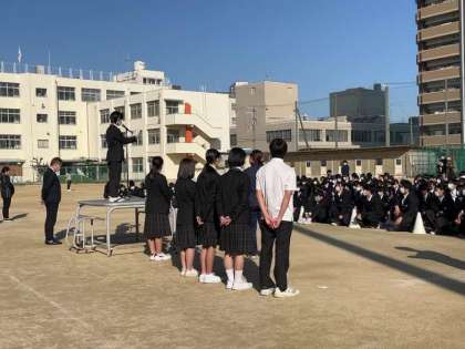 本日晴天に恵まれ、久しぶりに全校生徒が集合しての全校集会となりました。