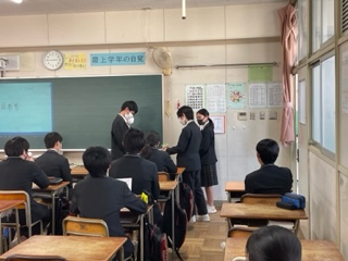 卒業生の各クラスで、1・2年生の実行委員がコサージュの贈呈を行いました。